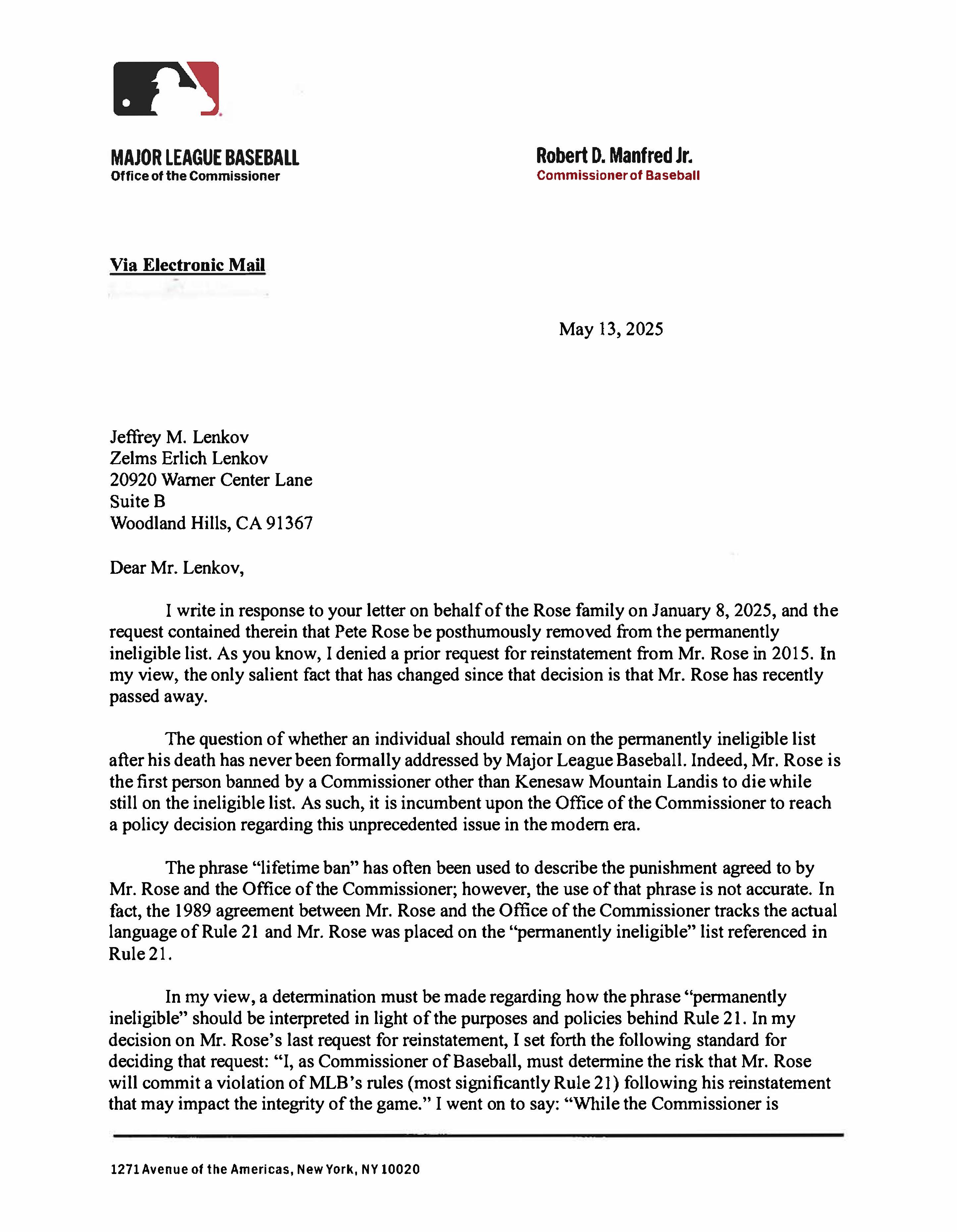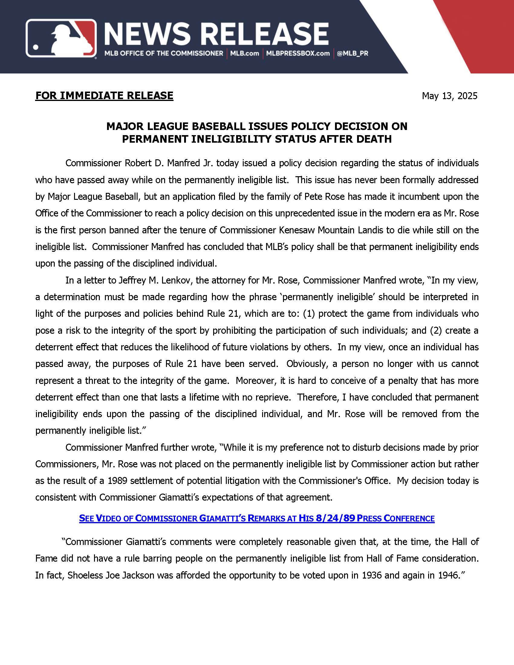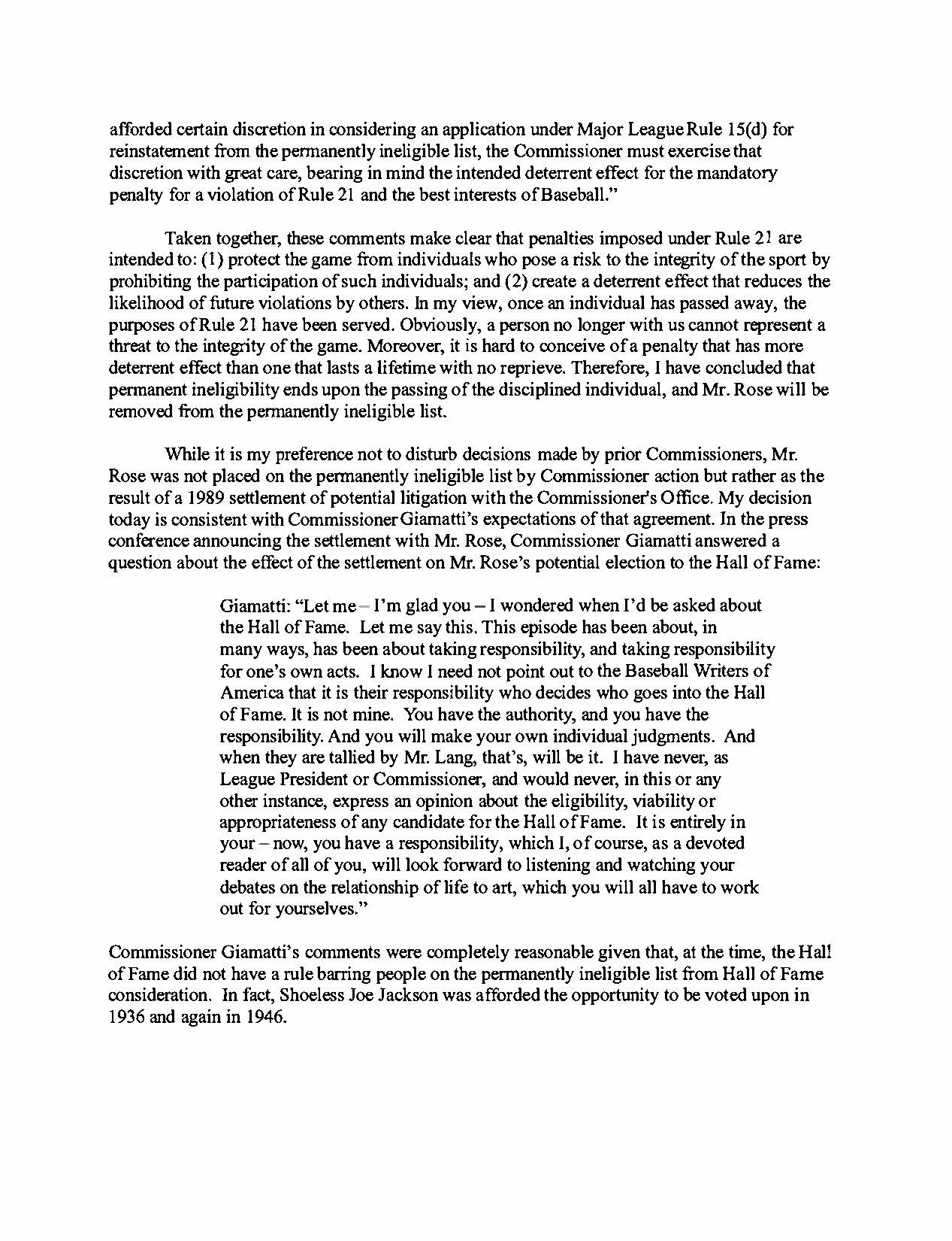 Commissioner Manfred's Letter Clearing Joe Jackson - Page 5